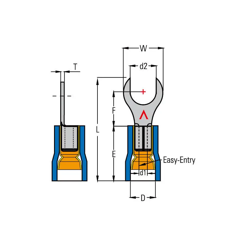 | mm² | A.W.G. | d2 | W | F | L | E | D | d1 | T | ||||